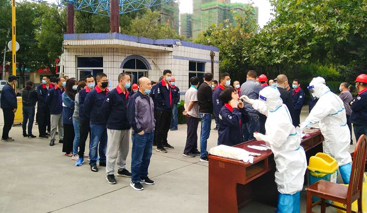 受青島疫情影響,為防止疫情擴(kuò)散傳播,2020年10月13日上午,宏泰接同和黨委通知,在公司臨時(shí)設(shè)立核酸檢測(cè)點(diǎn),為員工進(jìn)行核酸檢測(cè)。